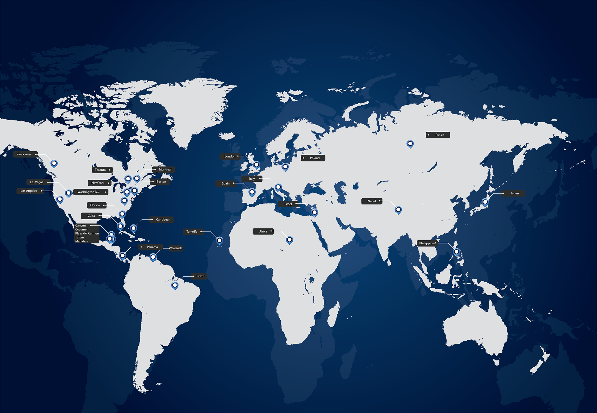 Servicing locations worldwide such as New York, Dominican Republic, Italy and many more.